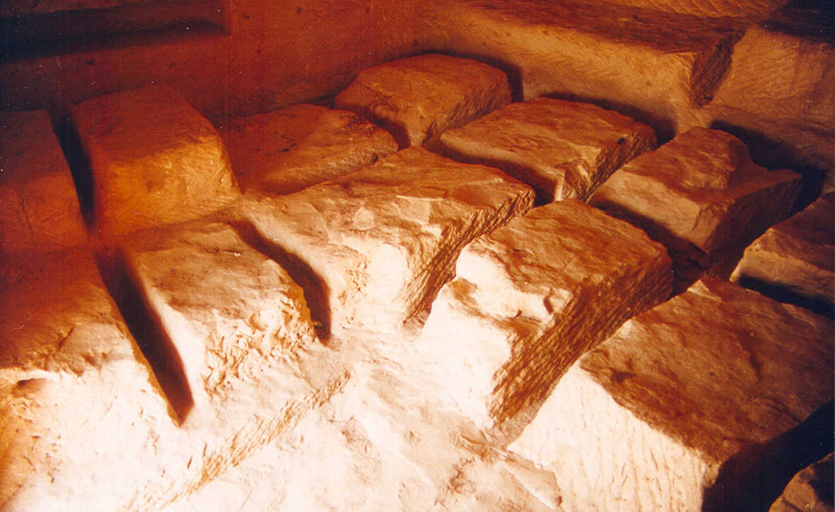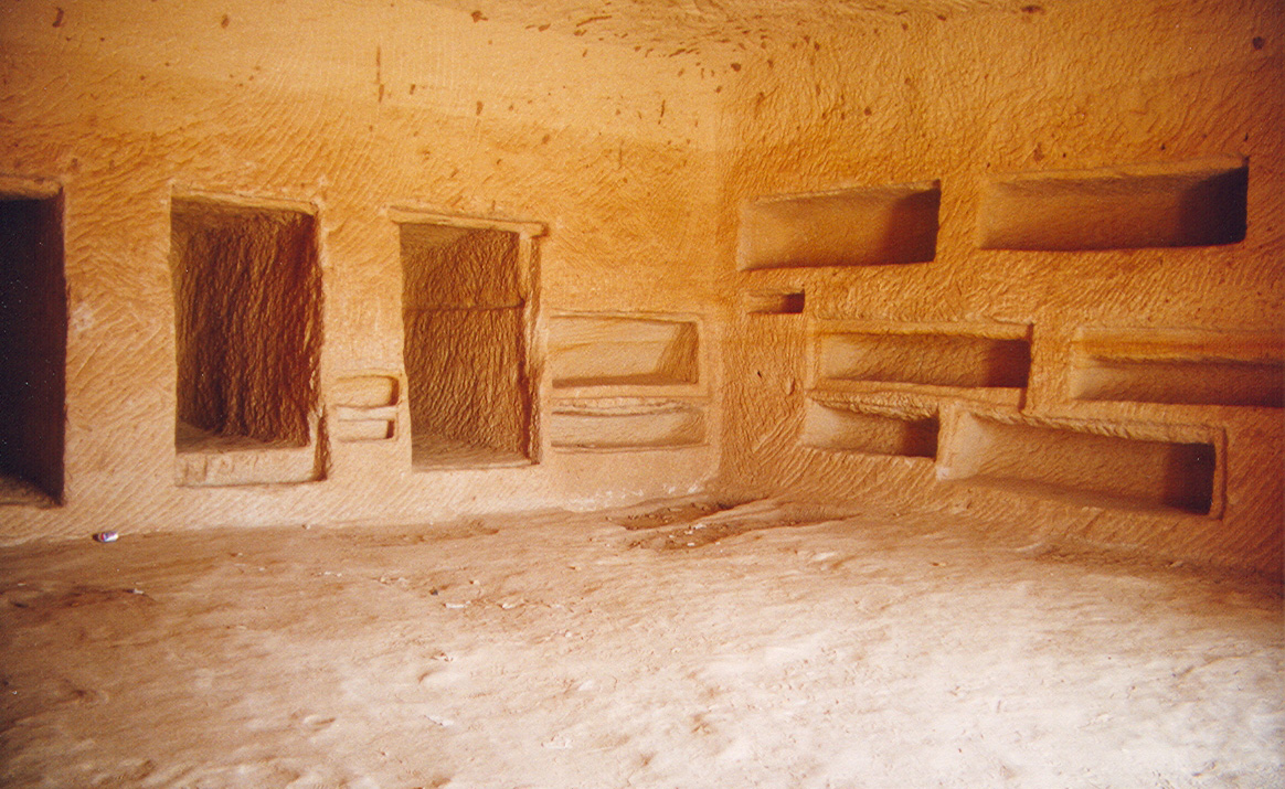 Εδώ μπορούμε να δούμε το εσωτερικό των τάφων. Όταν ψάχνετε πιο κοντά μπορούμε να δούμε κάθε σήμα σμίλη στο ψαμμίτη.