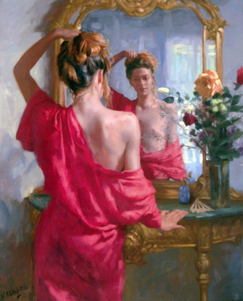 Vicente Romero Redondo, spanish painter, was born in Madrid as the eldest of four sons. Due to the work of his father, he grew up in many different towns all over Spain. The family moved back to Madrid when he was 15 years old. During his childhood, his parents thought he would dedicate his life to painting, as his caricatures of schoolmates and teachers were famous in every school where he studied and one would rarely see him without a pencil and a notepad in his hands. Romero achieved his dream: he began studies at the High School for Art San Fernando, the most prestigious art school in Spain - Salvador Dali studied there from 1922-1926. During his first years he dedicated his time to sculpture, but soon realized that only by painting could he express all the sensibility he possessed and needed to transmit.